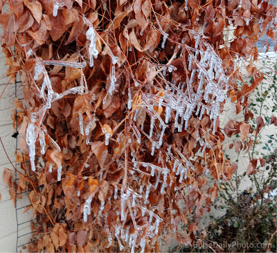 While I am concerned about the damage the extreme cold has done to my garden, this icicle display is O.K. The clematis vines are cut to the ground in the spring anyway.